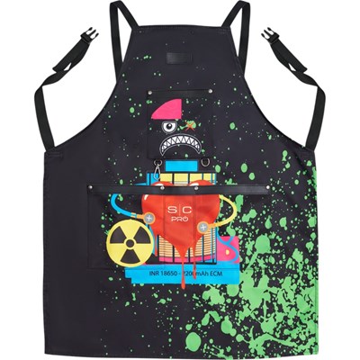 StyleCraft Professional Heavy Weight Waterproof Hair Cutting Apron with Cross Back Strap and Pockets Black Radioactive