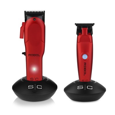 One of our most powerful clippers, EVER. With more power than ever before, the Rebel has a super-torque rotary motor with 7,200 rpms yet still has low noise and low vibration. Assembled with the Double Black Diamond Faper blade combination black diamond deep tooth cutting blade for superior fading and bulk removal. Blades are fully adjustable and can be easily zero gapped for the closet cut and finish. With customizable click or freestyle levers for maximum precision, flexibility, and options. Includes four color-coded Tight Dub Double Magnetic guards with harder, longer-lasting, and stiffer plastic teeth. We engineer and design the best quality tools that will last. A hanging hook for efficiency and storage. On the inside, it has a 3-hour cordless run-time, Lithium-ion battery and is Micro-USB rechargeable to take on the go whenever you need it. A plug-in charging stand is included for another power option. Tight or stretch taper bracket kits for long or short taper option.